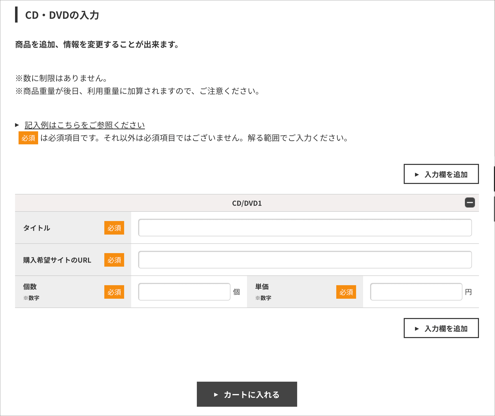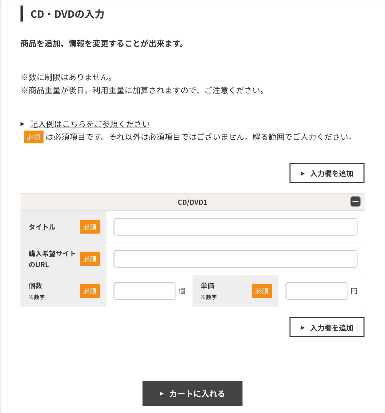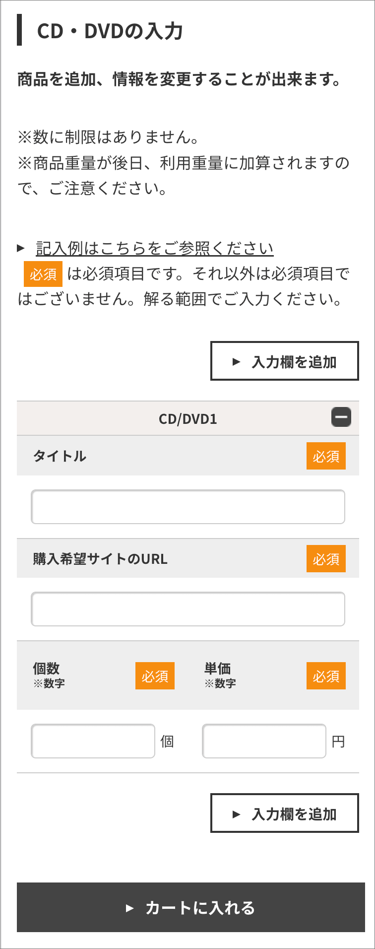 以下の項目をご入力のうえ、「カートに入れる」ボタンを押してください。