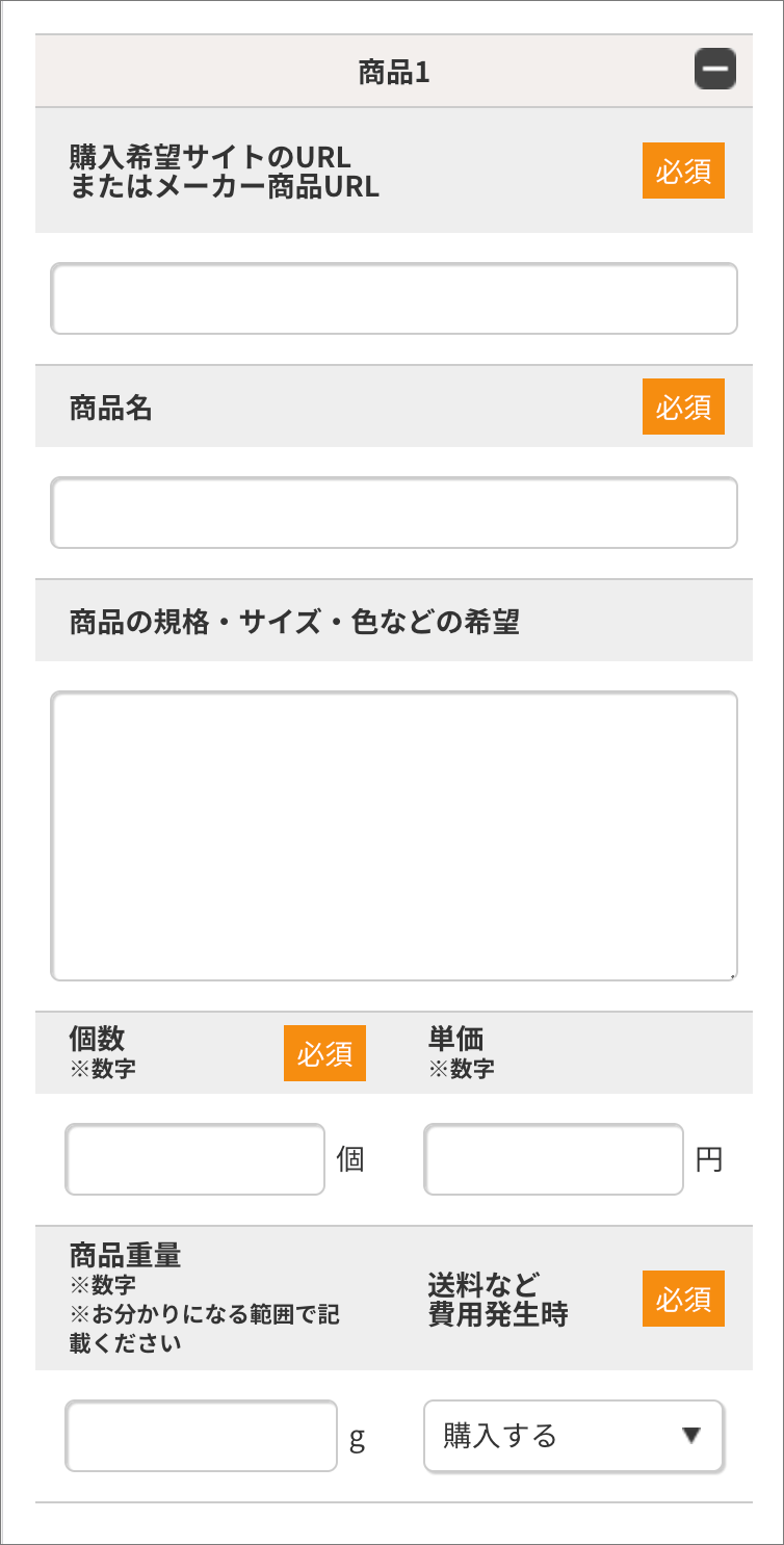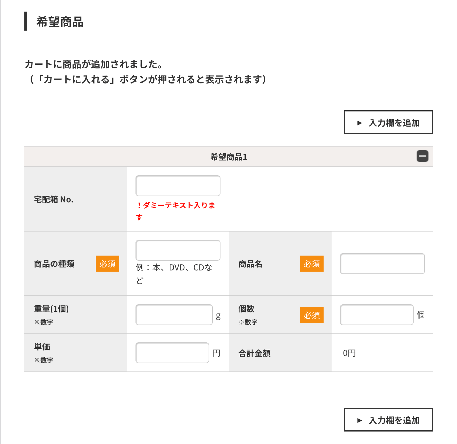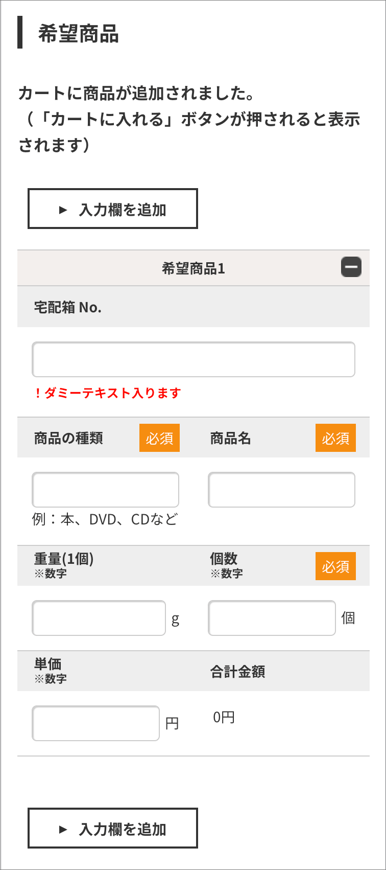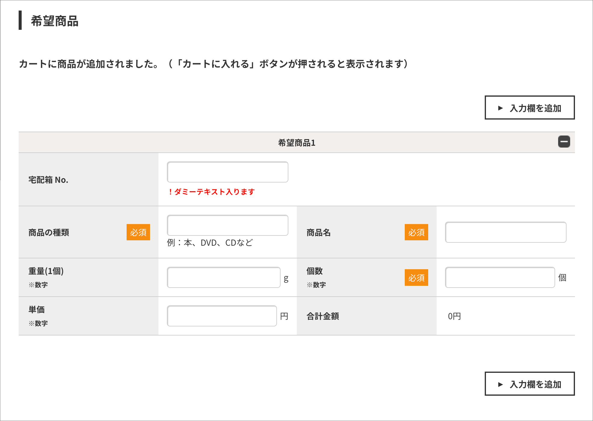 以下の項目をご入力のうえ、「カートに入れる」ボタンを押してください。