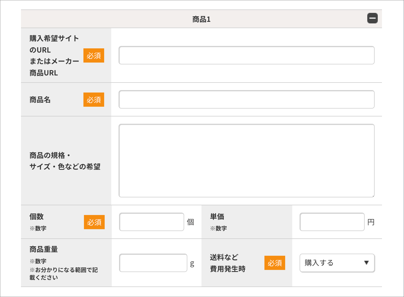 ※一部企業様では、商品情報の入力が不要な場合がございます。