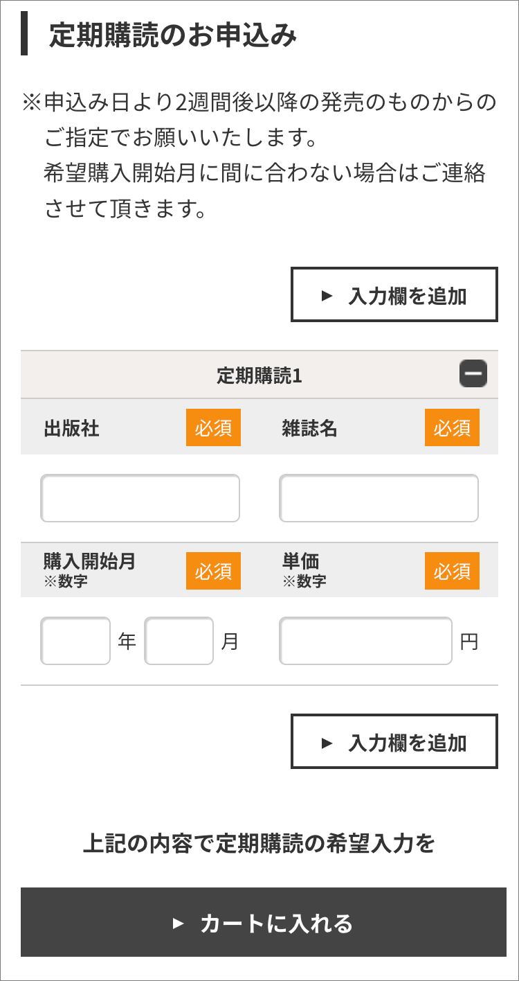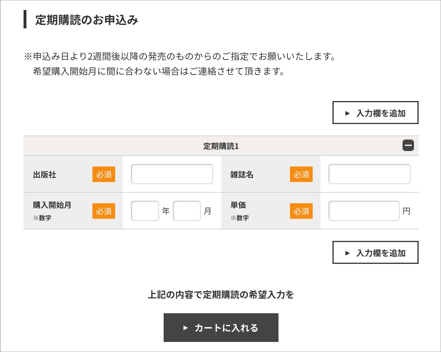 以下の項目をご入力のうえ、「カートに入れる」ボタンを押してください