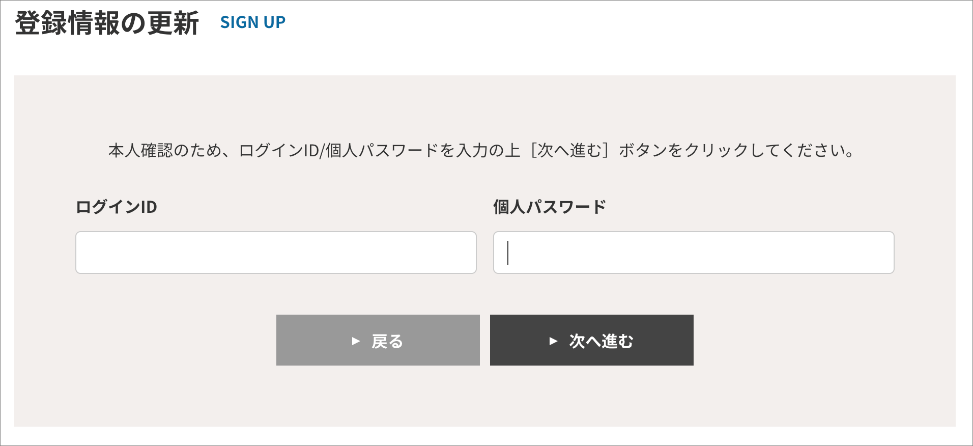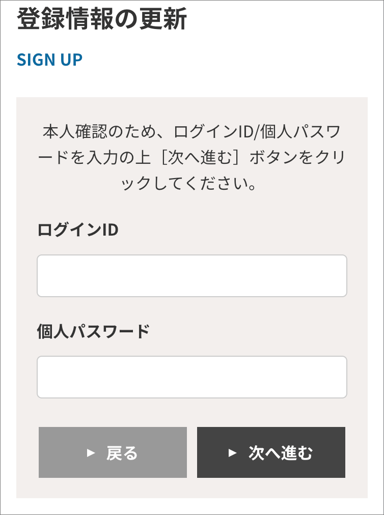 ※確認される場合は、登録情報の更新ボタンをクリックし、ID/パスワードをご入力ください。