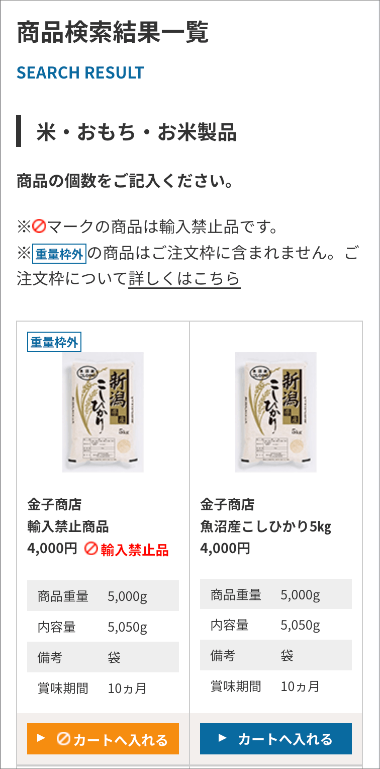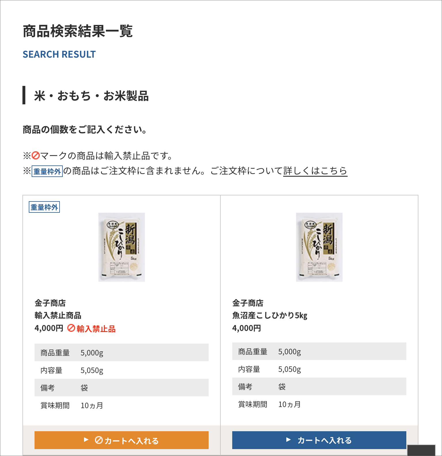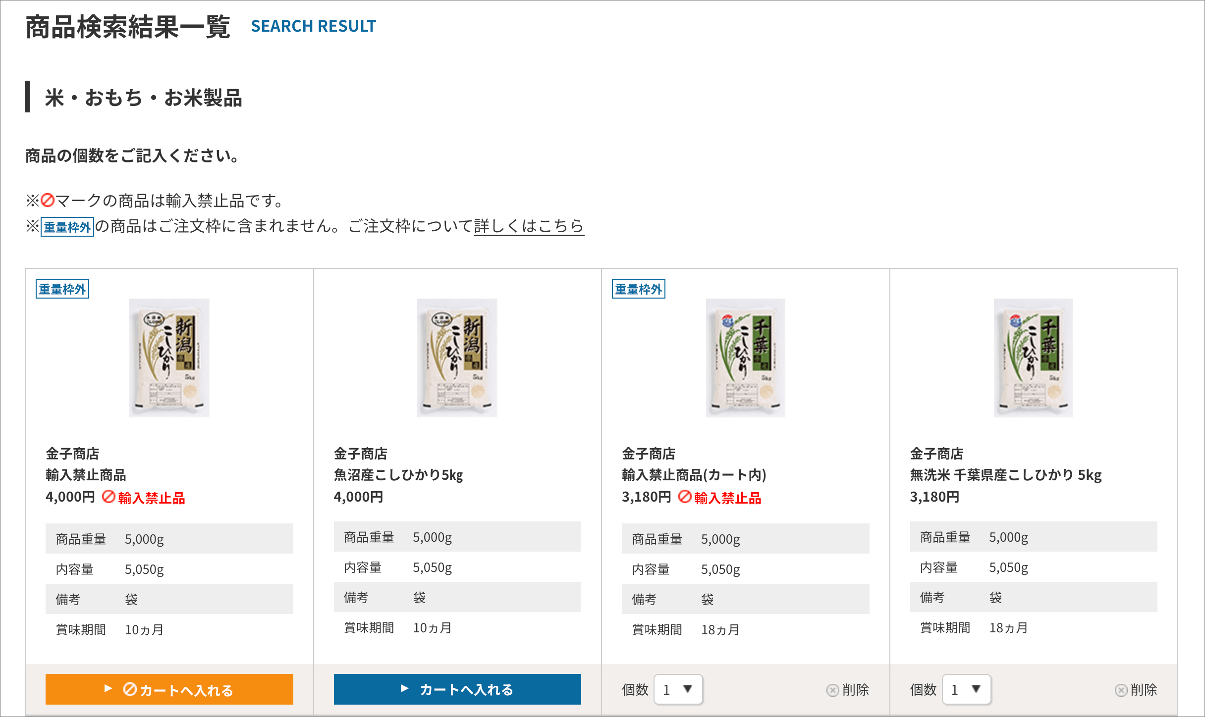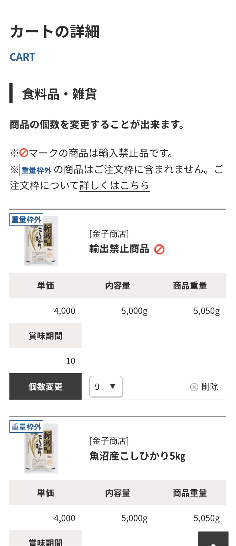 荷物到着後、カート内に商品が登録されます。商品内容をご確認いただき、お品物価格が異なる場合は更新ください。