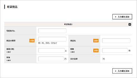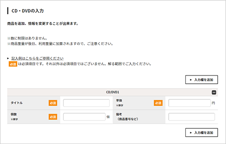 上記の発送人が発送希望の商品情報をご入力ください。