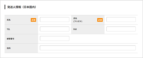 発送人情報(日本国内限定)をご入力ください。
