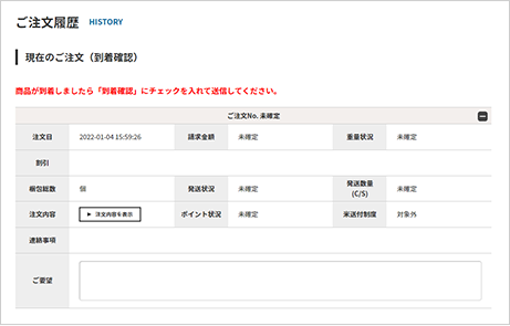 現在のご注文(到着確認)